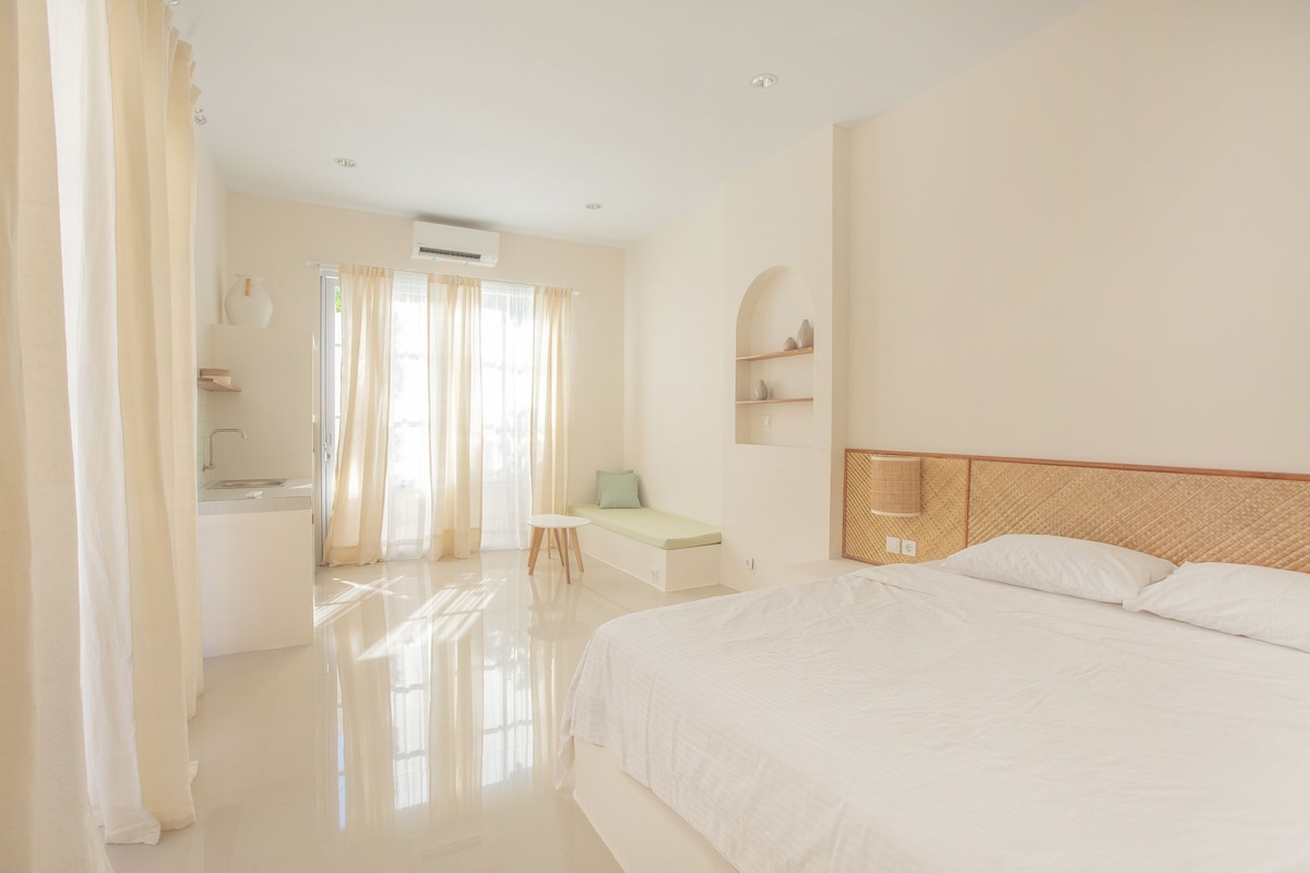 Discover many surprising ways to unwind in this self-contained Villa Bungalow within our sprawling estate. Wander lush gardens, sway in a vintage-style tandem swing, or relax by the natural stone pool. Soak in a designer tub or choose a book that tickles your fancy and relax on the breezy patio/veranda daybed. Your King Bed is like sleeping on a cloud. Also included: - Separate kitchen - Daily maid/housekeeping service - Up to 150mbps Wifi - 8-10 min walk to the beach - Peaceful, quiet