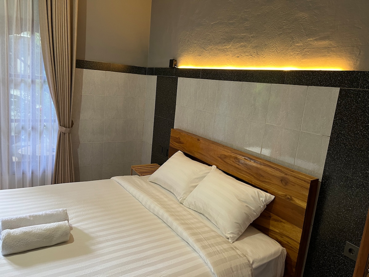 Chambre avec grande salle de bain dans Boutique-Hotel ( avril 2024) de plein pied sur magnifique piscine lagon et joli jardin. Mediterranean vibes et deco boheme pour cet hotel neuf situé a 5mn de Bingin et ses plages et du centre de Uluwatu ( Shops, restaurants, etc...) Coin salon avec smart TV, wifi haut débit, parking privé. Petit dejeuner a la carte inclus. Seulement 4 chambres dans l'etablissement, privacy maximale. Adults only.