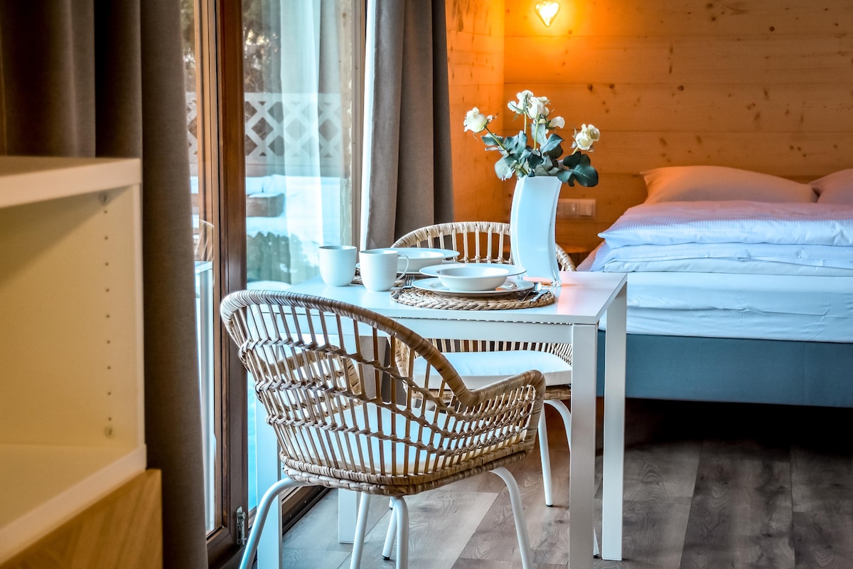 Apartament w jednej przestrzeni dla 2-4 osób z osobnym wejściem i w pełni wyposażonym aneksem kuchennym , łazienka . Brak osobnych sypialni Doskonała lokalizacja - 400 m od Term Chochołowskich, 7 km do Doliny Chochołowskiej i 15 km do Zakopanego. Na terenie obiektu PARKING gratis. Dla gości udostępniamy altanę ogrodową wraz z miejscem do grillowania oraz hamaki z leżakami. 150 m od domu znajduje się przystanek, z którego odjeżdża bus do Zakopanego ( i nie tylko) co 10/15 minut