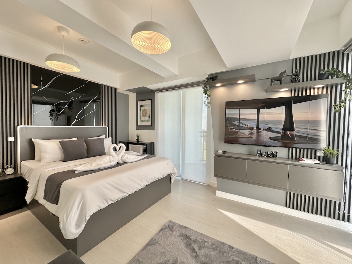 Tucked in the heart of Azure North, Pampanga, Sweet Monochrome Retreat is where modern elegance meets cozy comfort. Whether you’re planning a romantic escape, a chill barkada hangout, or a quick city reset—this 1-bedroom unit gives you that hotel-like experience with a homey touch. Enjoy your mornings with coffee by the balcony, afternoons lounging indoors with Netflix, and evenings soaking in the relaxing city and pool views 🌇