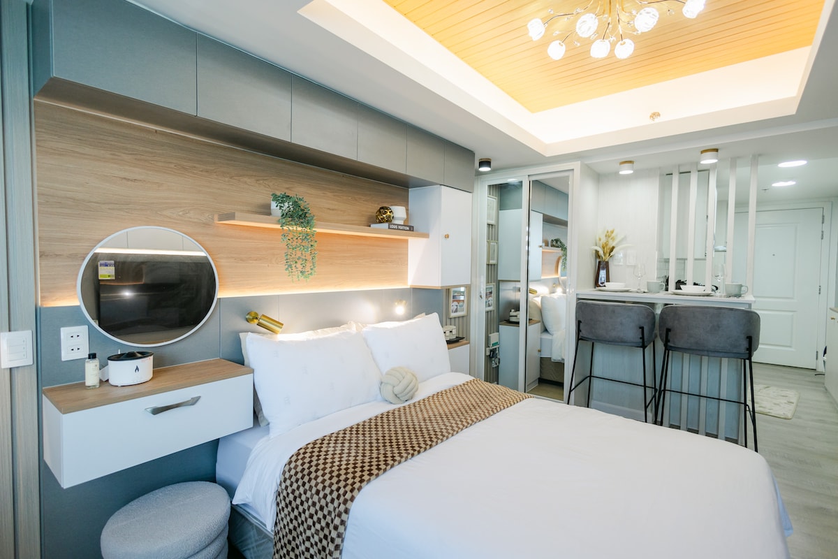 Welcome to The Meydan Suites at Azure North, a Japandi-inspired studio retreat in San Fernando, Pampanga. Just 1.5 hours from Manila, our spacious 2-bed studio comes with a full kitchen, one bath, and a private balcony on the quiet side of Azure. For ₱200 per guest per shift, you can enjoy resort-style amenities including the wave pool, the beach pool, and leisure facilities. It is the perfect sulit escape for couples, families, or barkada.