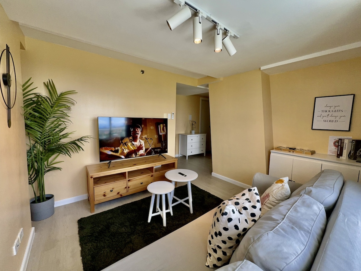 Kick back and relax in this calm, stylish space. This condo unit is designed to free your mind from clutter and stress. The goal is to make you feel like it was designed with you in mind! The design is chic, color theme is white and neutral. Very IG worthy! 🤍