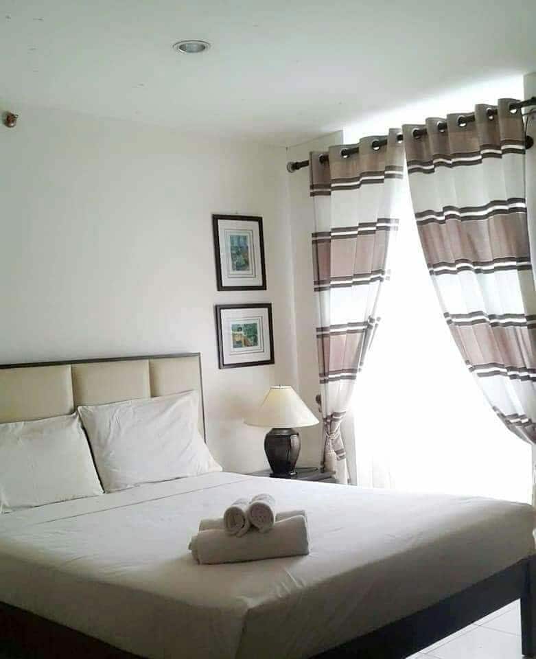 Staycation in Pampanga for only P2500/night 🏝Man-made Beach and wave pool 🌊 ⛰Spacious balcony - Mount Arayat view 🔅Minimalist Interior with extra bed Can accommodate max 4 person Studio unit with extra bed