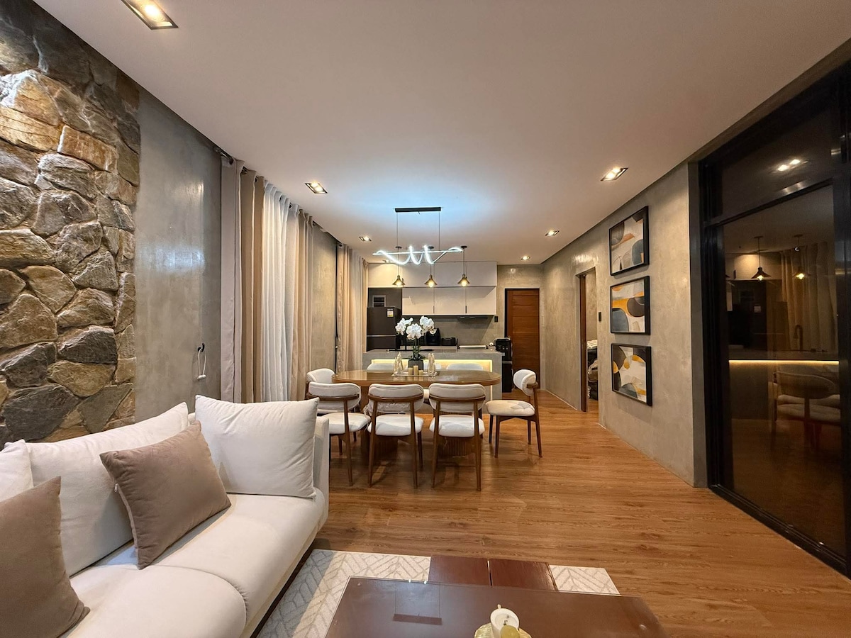 DISCOUNTS AND FREEBIES OFFERED: This is not just a home but a Smart Home! Spacious, aesthetic two-bedroom unit with a stunning view, big swimming pools, videoke, and all the Netflix, Youtube, and Disneyplus your eyes can take—with free snacks, mineral water, and fast internet. If you are looking for a refreshing retreat, a memorable family staycation, or a conducive work from home kind of thing, Cyan Smart Hub is waiting for you.