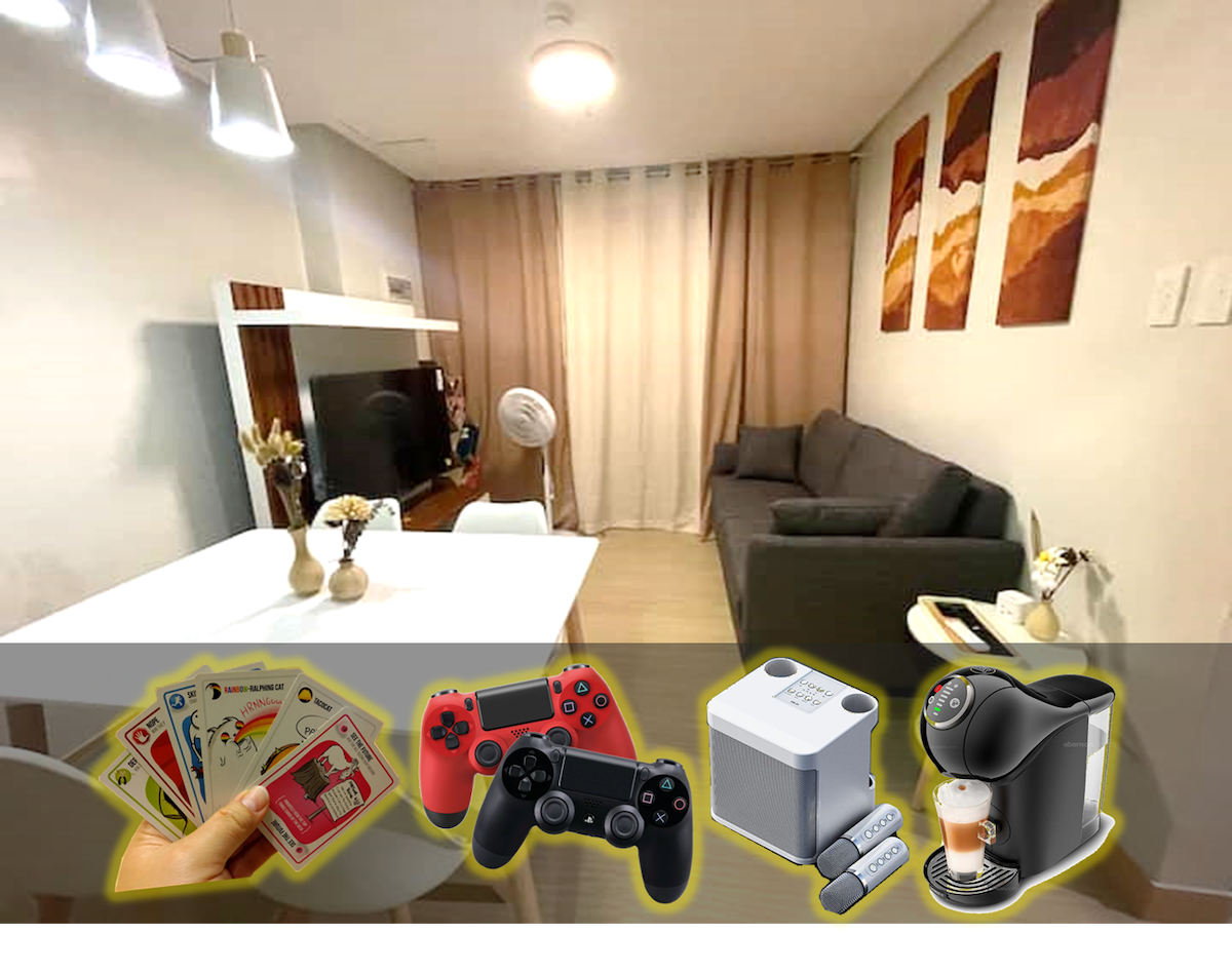 A cozy and comfortable studio unit located in the heart of SMDC Cheer Residences in Marilao, Bulacan! Our unit is fully furnished and equipped with everything you need for a comfortable and enjoyable stay, including a comfortable queen-sized bed, a sofa bed, a flat-screen TV, a dining table, a kitchenette with a refrigerator, microwave, electric kettle, and basic kitchenware, a private bathroom with a hot and cold shower, swimming pool, a 24-hour security and reception desk.