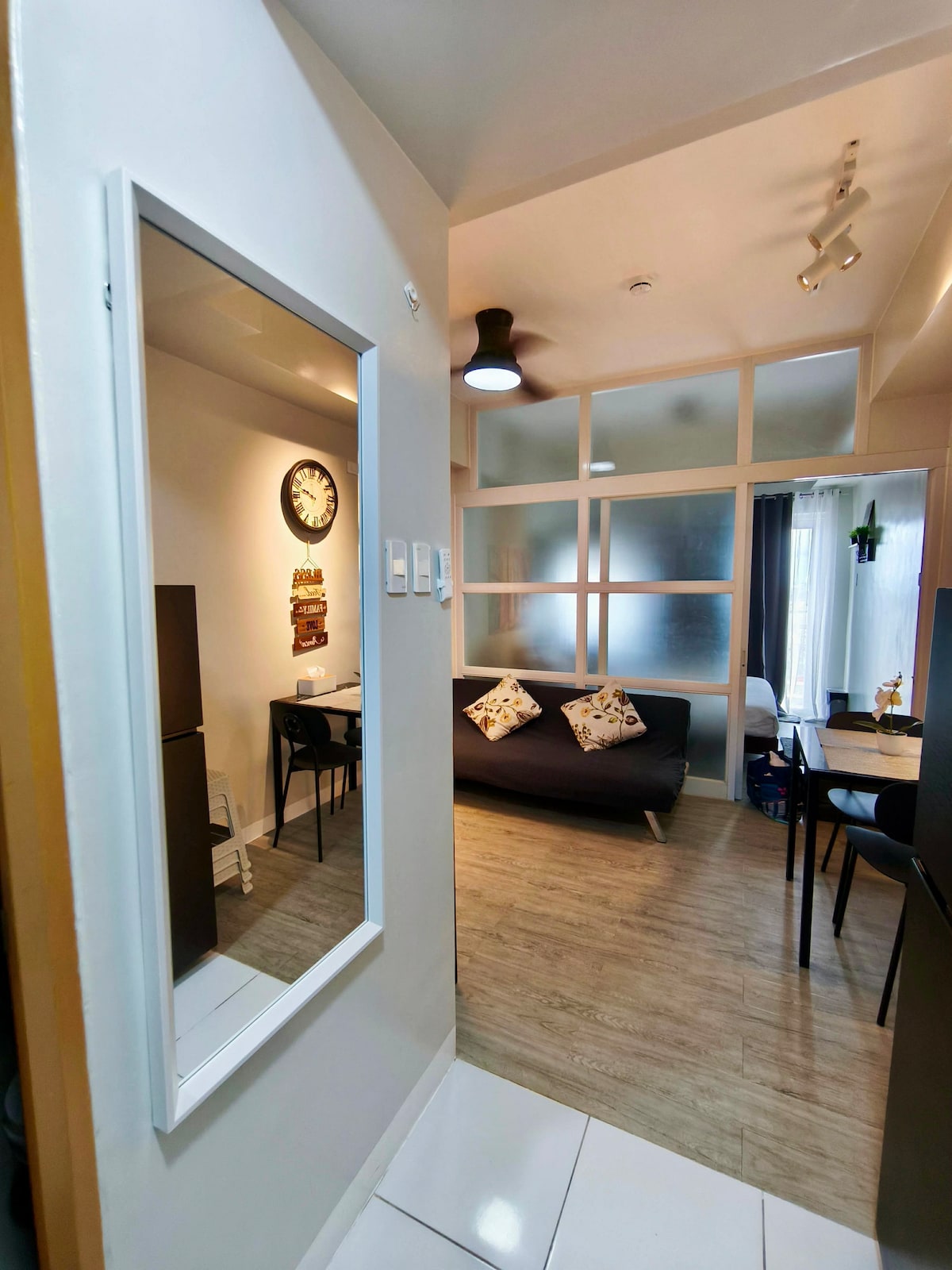 Kick back and relax in this calm, stylish space bauhaus-inspired studio unit with a city and mountain view that captures dreamy mornings and bed weather vibes. We pride ourselves in having a clean studio condo at an affordable price! Discounts for longer stay. 🅿️PARKING RATES: (Please inform ahead of time) 🚘 Car -₱250 to ₱300 🛵 Motor - ₱150 to ₱200 💦SWIMMING POOL DETAILS: Proper swimwear is required 🩱 Swimming Time: 8AM to 10PM ₱150/pax regular days ₱300/pax holidays
