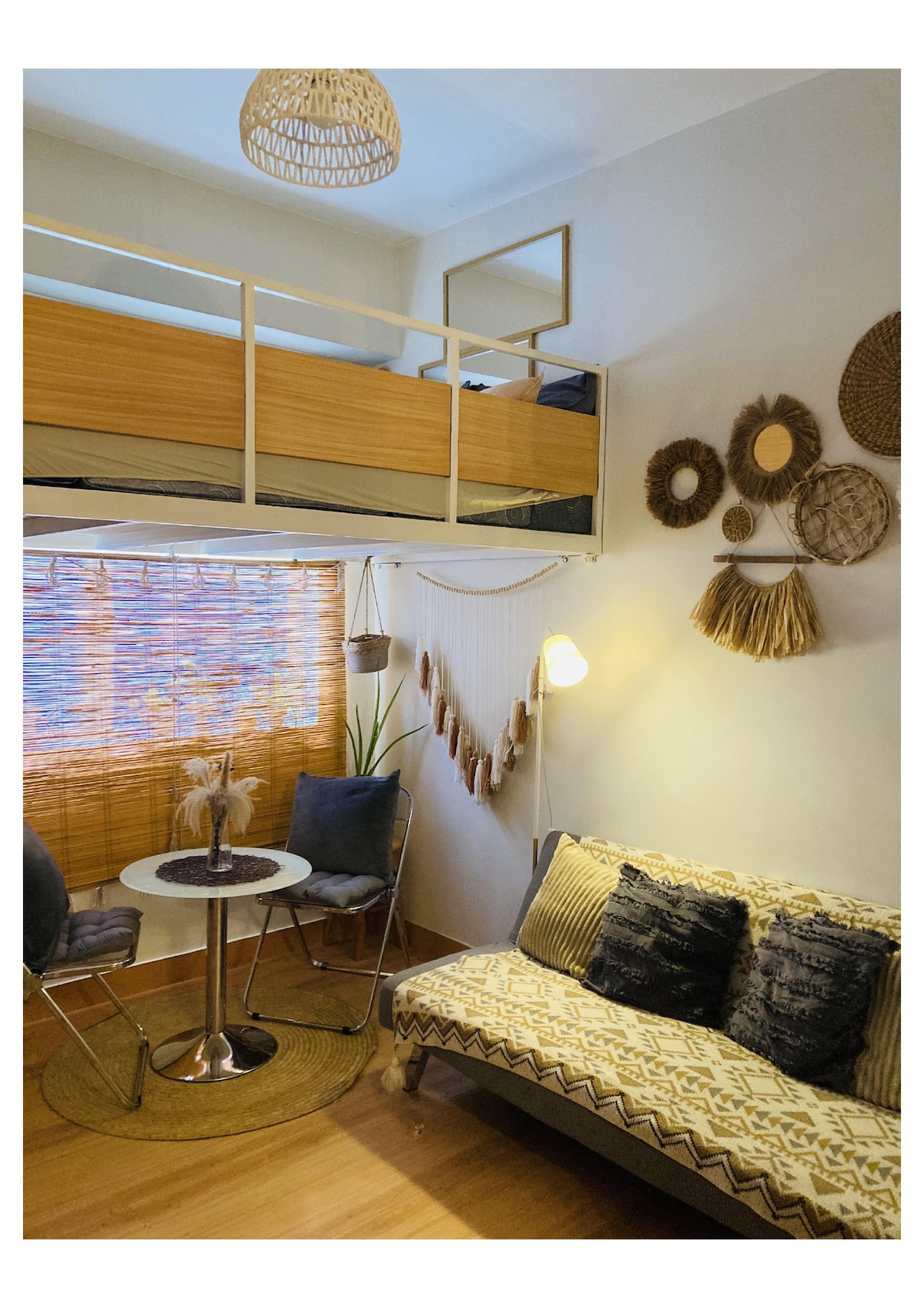 Welcome to this artistic bohemian studio, a cozy retreat filled with warm tones, lush greenery, and eclectic decor. Relax in the inviting seating area or enjoy the natural light streaming through textured curtains. A comfy bed with fresh linens promises restful nights, while artisanal touches like woven rugs, handmade ceramics, and unique wall art complete the ambiance. Just minutes from local cafes, shops, and attractions, this space is ideal for those seeking a stylish, peaceful getaway.