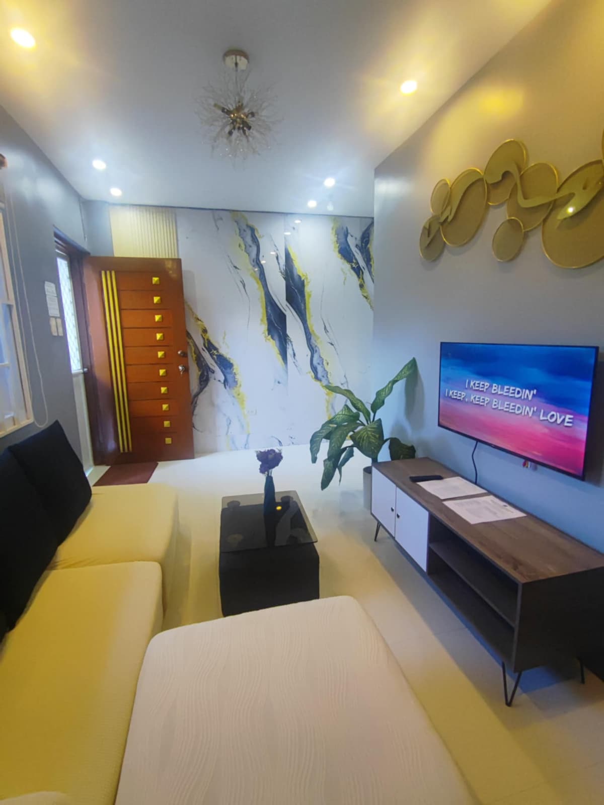 >Cheer Residences - 5th Floor >Very Safe (special code exclusive for the guest) >SM Mall Marilao (1 min walk) >Swimming pool >24/7 Security >55 inch TV >Free Wifi >BT Speaker Karaoke >Aircon >Jogging area >Kids playground >Rain shower with heater >Lounge >Wheelchair accessible >One Double bed with pull-out @ right side for extra bed >Opposite Starbucks & Supermarket >Nearby Philippine Arena/Sports Stadium >Nearby Divine Mercy >Easy to book Grab or Indrive in a few minutes for your transport
