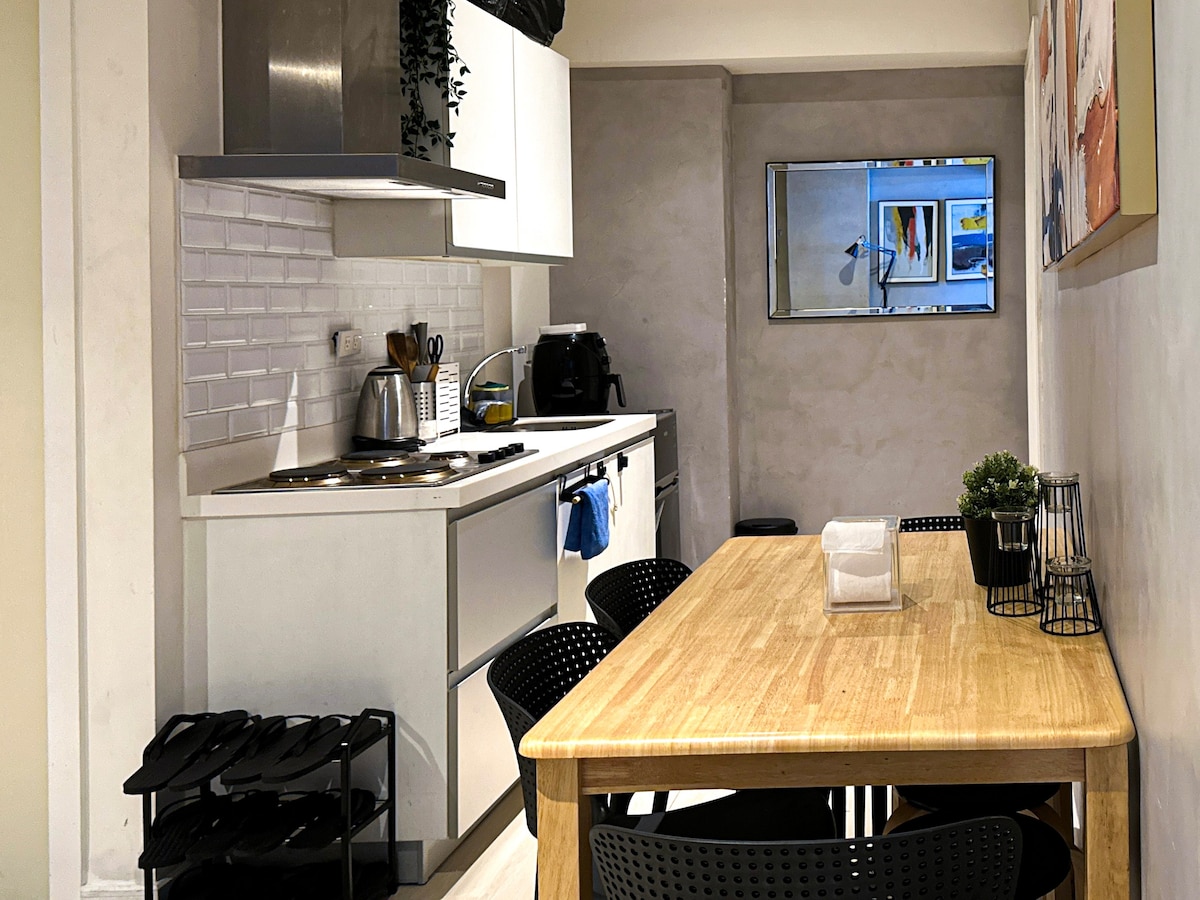 Welcome to Cozy Nook PH at 15F Maldives Tower, Azure Urban Resort Residences! Experience the perfect blend of industrial-cozy and artsy design in our 2bed, 1bath condominium. This thoughtfully decorated space is designed to provide you with comfort and style during your stay. • Game Console: 20,000 classical multiplayer games with 2 controllers • Board Games • Karaoke • Playing cards • 300mbps Wi-fi • Balcony w Sunrise City skyline view • 55-in smart TV with Netflix