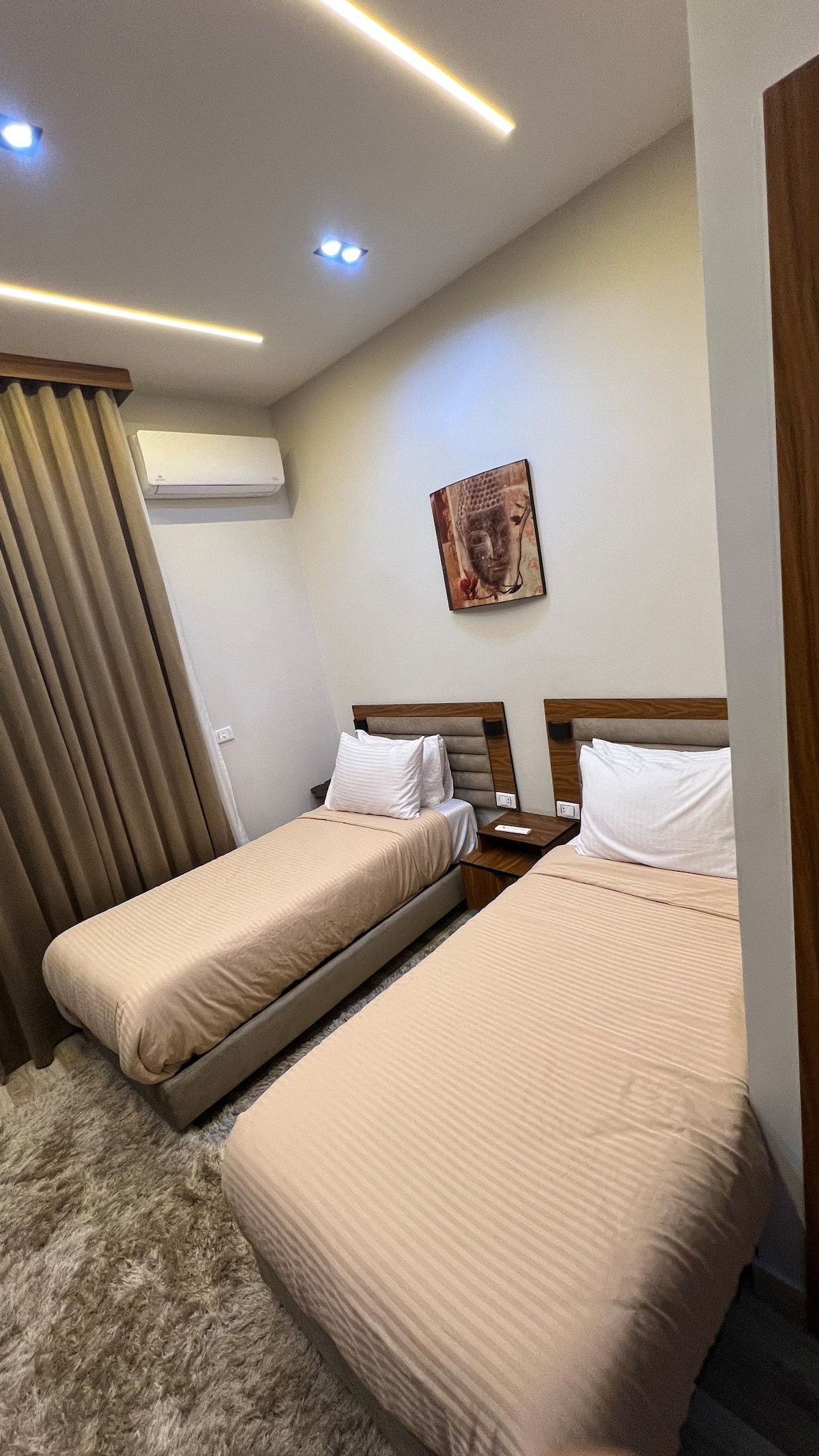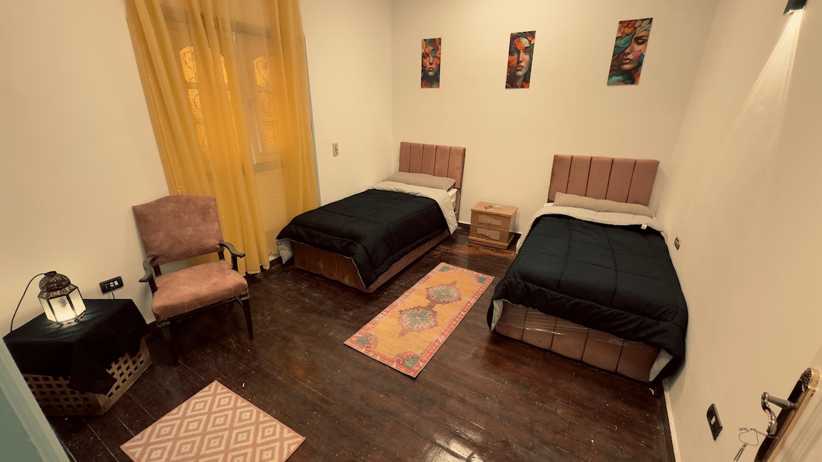 This stylish plaEnjoy a comfortable stay in this well-appointed twin room located in Cairo. The room features two cozy single beds, clean linens, air conditioning, and free Wi-Fi, making it ideal for friends, colleagues, or travelers sharing a space. Designed for comfort and convenience, the room offers a relaxing atmosphere after a busy day exploring the city.