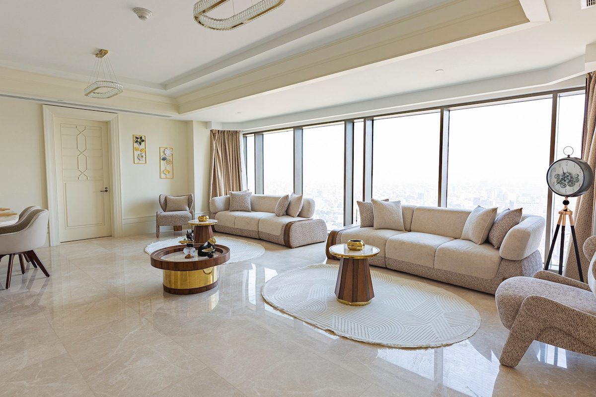 This Apartment is Offered By Dhbstays , The 2-Bedroom Partial Nile View suite at the St. Regis Hotel offers an blend of luxury, comfort, and breathtaking views. With two elegantly appointed bedrooms, this suite is designed for both relaxation and sophistication, making it ideal for families or those seeking extra space. Floor-to-ceiling windows frame panoramic views of the iconic Nile River, offering a serene and picturesque backdrop.