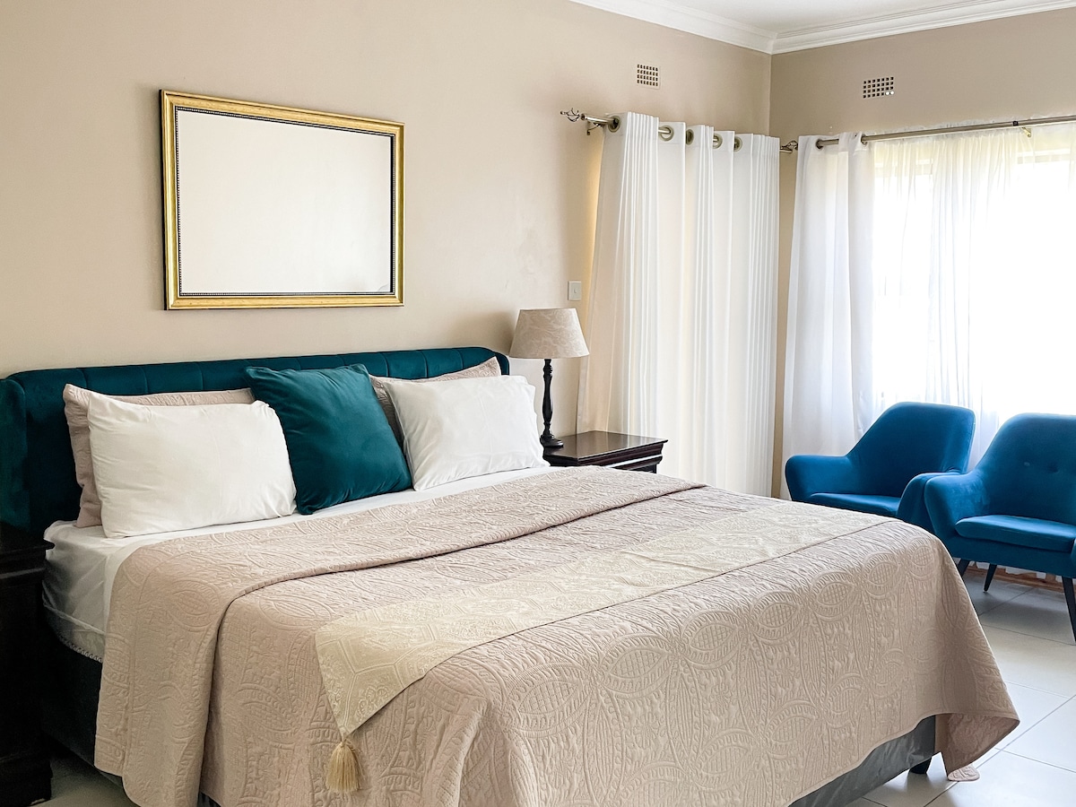 Welcome to 8 On Dianne - a pocket of tranquillity tucked away in a corner of the beautiful city of glorious blue skies. Our suites offer the perfect balance for work and leisure, styled with intention to create a functional and calming atmosphere to foster productivity, while creating an escape from the hustle and bustle of the city. Enjoy our BnB’s spacious en-suite rooms with Wi-Fi, DSTV, workstation, kitchenette, and backup solar power.