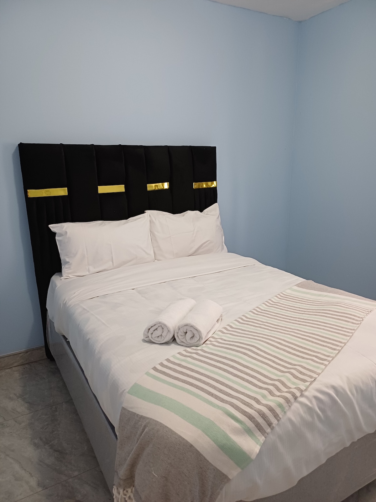 Quiet, beautiful executive / self-catering, two-bedroom with ensuite close to supermarkets, fuel station, hospital, pharmacies, hotel, restaurants. Secure parking. Free WiFi. Dstv. Power backup. Beautiful balcony view. Each booking is for the whole apartment; there is no sharing with other guests who are not part of your team.