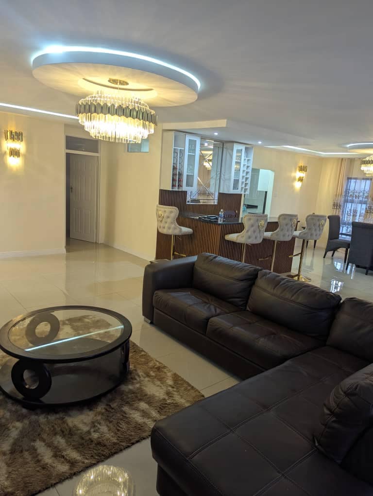 Three bedroomed house (MES) in a quiet neighborhood with a mid sized pool. Offers high speed uncapped wifi and two bedrooms are equipped with smart TVs with Netflix access. Comfortable work space for business travelers. Fully equipped kitchen, solar and generator back up- trampoline for kids, very ideal for families. Very secure with rapid response. Property manager available 24/7. Complimentary airport pick ups and special car hire rates for guests.