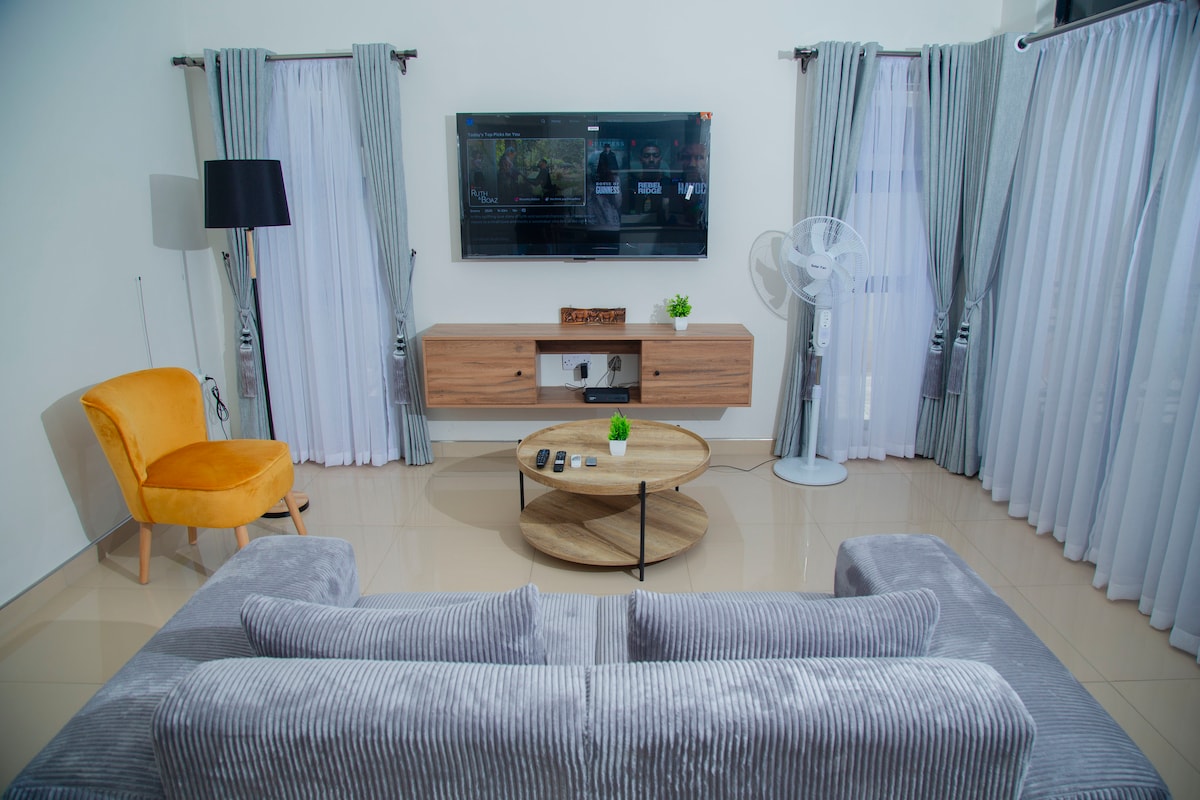 This is a spacious 3 bedroomed home with modern finishings. The home boasts of a fully equipped kitchen, complete with washing machine/dryer. There is back up power (solar) and water. The home boasts of a comfortable chic living area that is exquisitely furnished. The space allows you to unwind and relax after a long day. Guests have access to the entire home and will be provided with own keys and electric gate remote. The home also has a CCTV outside the house to provide ultimate security.