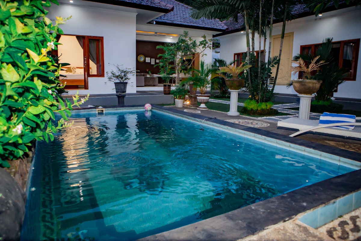 Welcome to our little piece of paradise in central Lovina. Just footsteps from the famous Dolphin Statue and the beach cafes of Lovina is this huge suite, including private living area and kitchenette with sea views and a lovely office space. Perfect for digital nomads, families, couples and individuals. With fantastic sunset views, as well as access to a huge shared swimming pool, shaded by bougainvillea, this is the ideal spot to base yourself for exploring North Bali and all its treasures.
