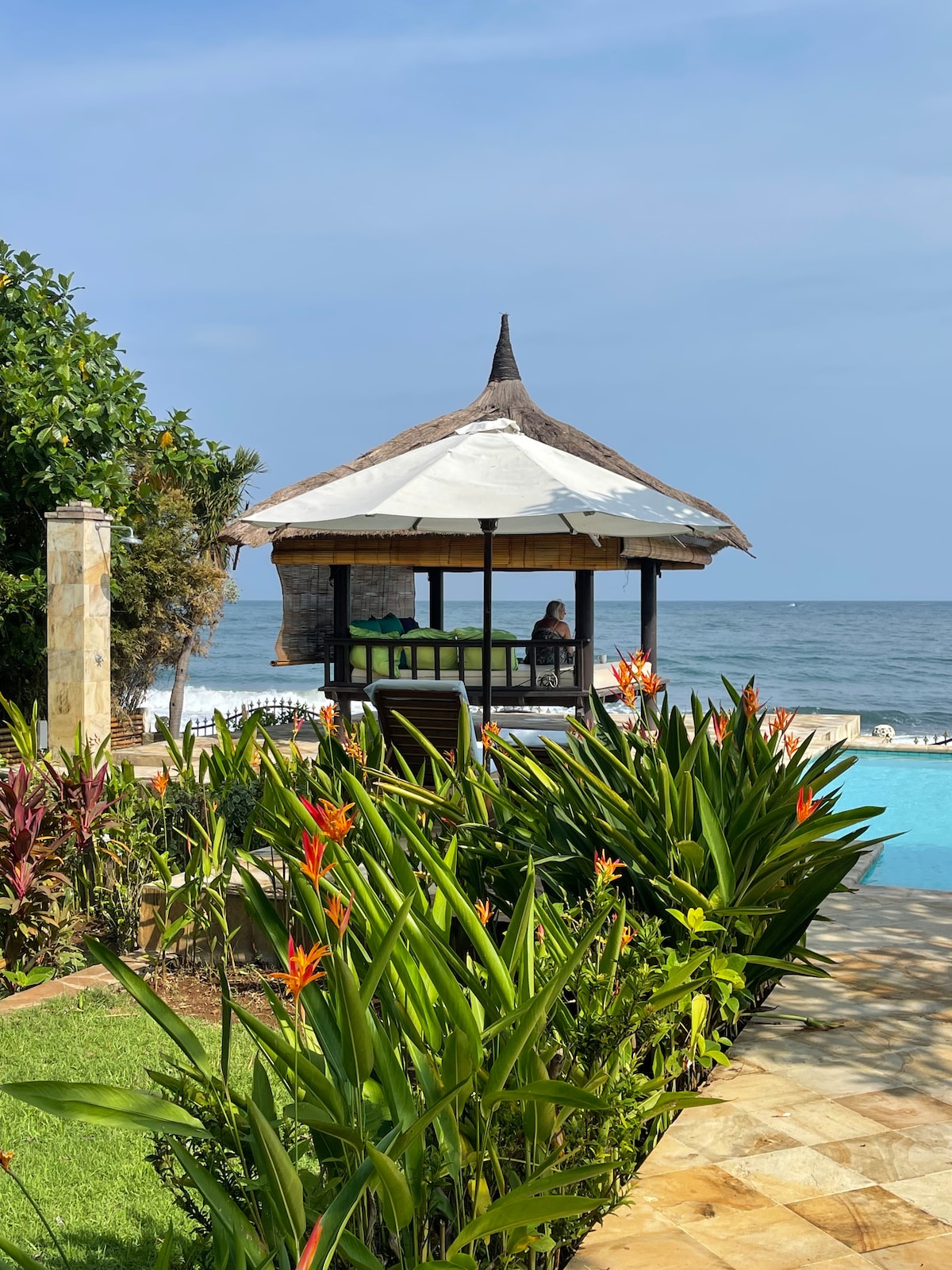 The Beach House, Melaya Cabanas. Our three cabanas are located in a 13,000 square meters land. All overviewing the mild ocean. Enjoy the sound of the wave, sunset and Java island, right from your terrace, or jogging miles along the beach.
