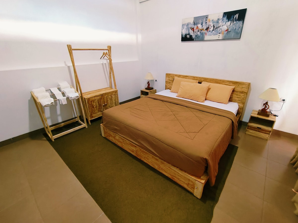 Welcome! Shri Ganesh Hotel is a Balinese bungalow-style. Each of the nine units is a private unit and there are no shared-walls. Complete with your own king sized-bed and private bathroom. Each Unit: - Air Conditioning - Free Wi-Fi - Marble floors - Dresser with lock and key - King-sized bed - Stone and tile bathroom with shower - Hot-water - Towels, toilet paper. ###Shared-pool#### RESTAURANTS **BREAKFAST INCLUDED WITH STAY** - 2-minute walk to beach - 24-hr mini-mart nearby