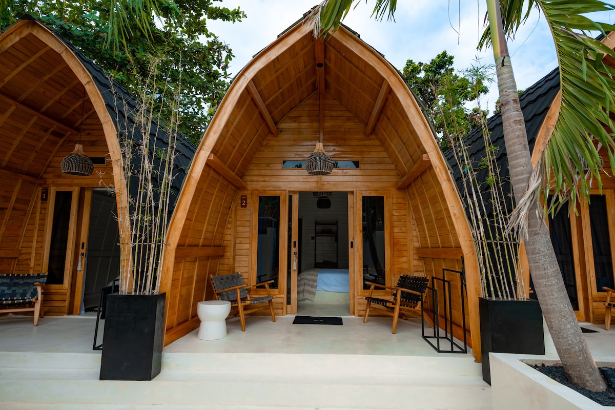 Immerse yourself in traditional design and comfort, complete with fresh linens and towels, A/C, and comfortable beds for a perfect night's sleep. Each room includes a cabinet and towel rack, as well as a private outdoor seating area for relaxation. Take a quick two-minute walk to the beach, where you can catch sight of playful dolphins, or dine at the delicious nearby restaurants and Warungs. Don't miss out on nearby attractions like breathtaking waterfalls and stunning temples.