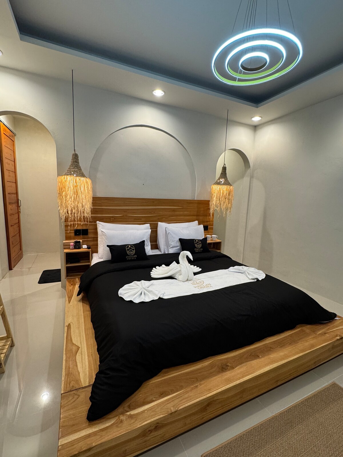 Experience Alpine Bliss in Bali On top of the mountains, at an altitude of 1000 meters our spacious wooden lodge offers a one-of-a-kind escape on the Island of Gods. Enjoy the charm of an alpine atmosphere with breathtaking panoramic views, the warmth of the wooden fireplace, and a touch of classic retro flair. As the evening turns cooler, light the fireplace, snuggle under the down duvet, and marvel at the magic of fireflies dancing outside.