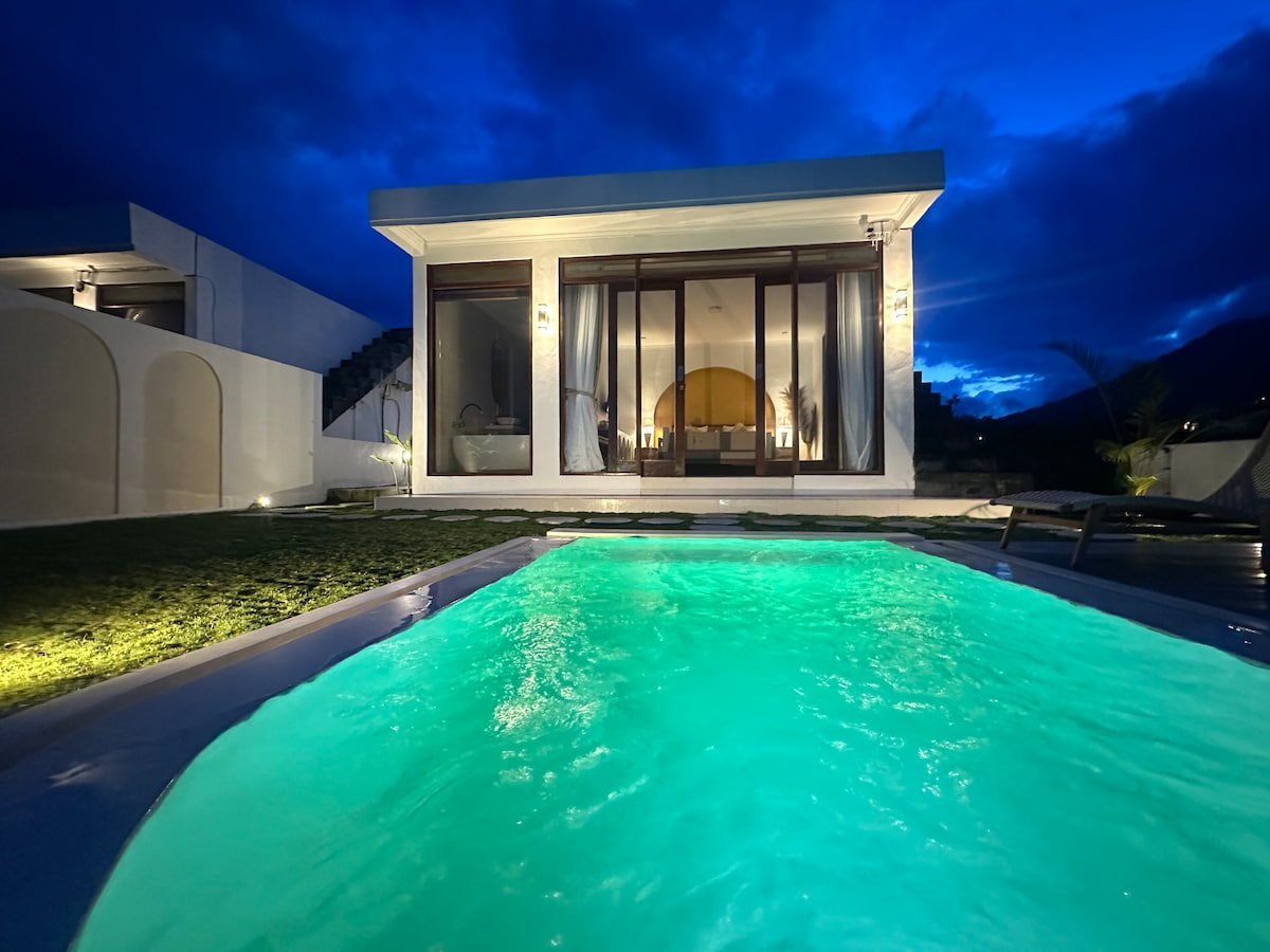A Delux Room at La Luna Kintamani is a stylish, modern accommodation option in the highland of Kintamani, a scenic area known for its cool mountain air and dramatic views of Mount Batur & Caldera Batur. Guests choosing this room enjoy a private plunge pool right at front of their room,perfect for relaxing with panoramic views of the Caldera Batur. The design typically blends contemporary comfort with natural elements, creating a tranquil hideaway ideal for honeymooners,couples on a healing trip.