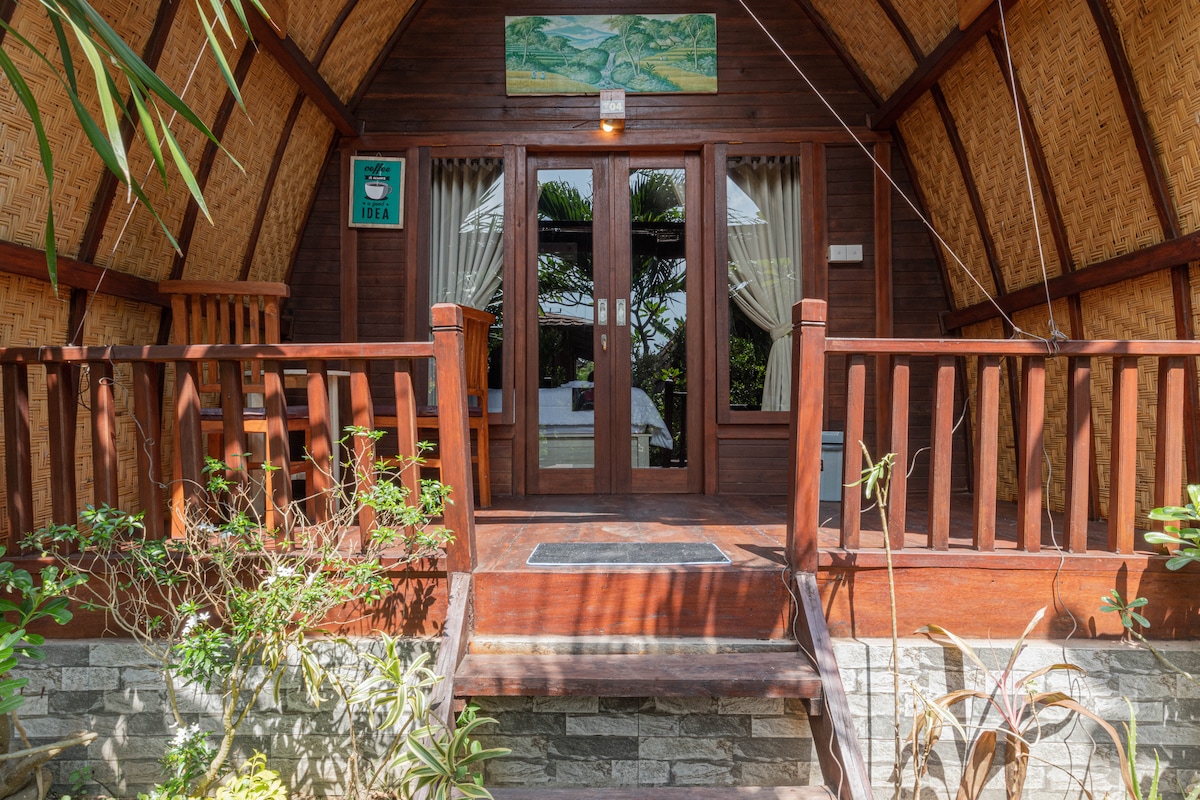This wooden guesthouse is nestled atop a mountain in the area just north of Munkduk, Bali. It’s a great escape from the bustling city and crazy traffic that is found in southern Bali. Garden Terrace has a beautiful surrounding garden area, but it is close to a small road, so there is occasional sounds of vehicles that pass by throughout the day. At night it is much more peaceful There is an espresso machine in the room for guest. I sell coffee products that come from north Bali