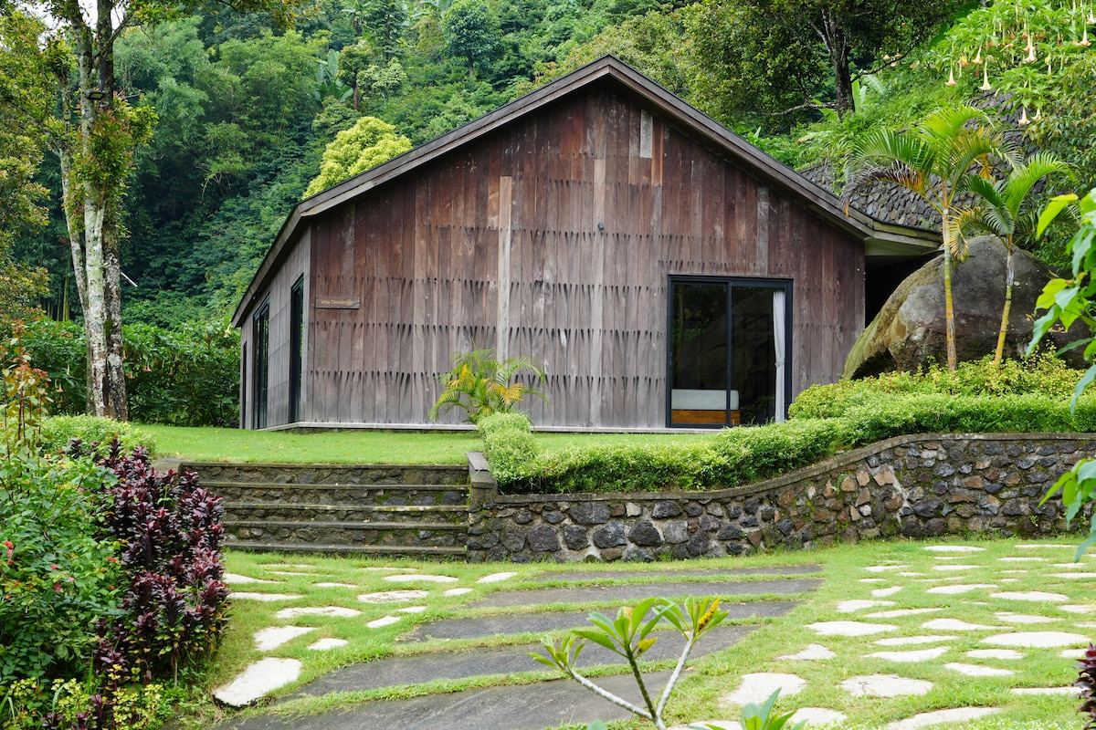 Four bedroom cabin that we've renovated applying a ski chalet concept. Each suite has a copper bathtub looking out on protected forest. The views are incredible with panoramas of Lake Buyan, Handara Golf Course, and steep mountains in the background. At 1,400 m. above sea level, we're blessed with eternal spring weather in the day time with chilly nights. Wake up early morning to the smell of conifers and take a walk to see jungle fowl, deer, civet cats, and a wide variety of birds.