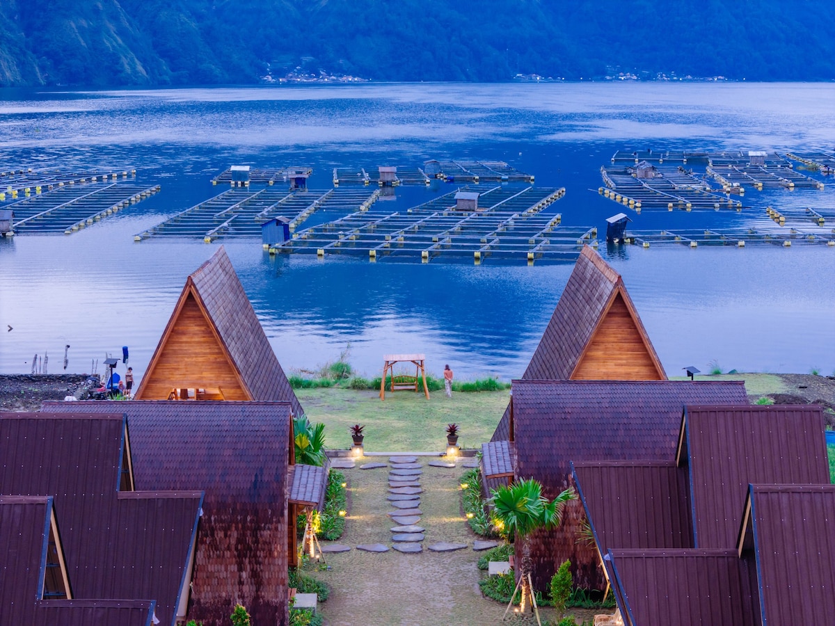 Situated right on the edge of the pristine Lake Batur, our cabin boasts stunning panoramic views of the water and the majestic Lake Batur. Enjoy the peaceful surroundings and fresh mountain air as you unwind in this beautiful setting. Step out of your cabin and walk down a short path to the lake's edge. Enjoy fishing or simply relaxing by the water.