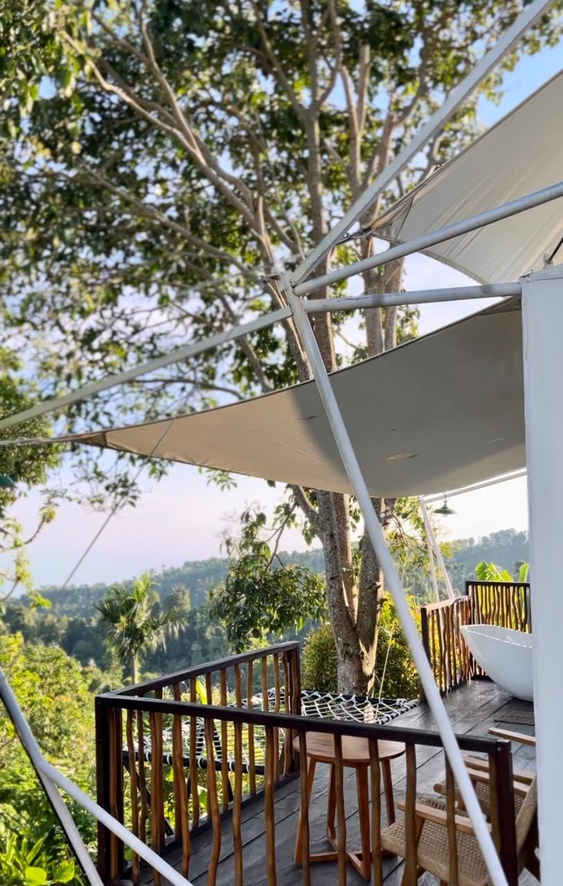nikmati pengalaman tidur di tenda dengan fasilitas yang mewah dengan tetap terhubung dengan suasana alam yang damai dan pemandangan bukit, lembah, hamparan kebun kopi dan pemandangan indahnya laut bali utara