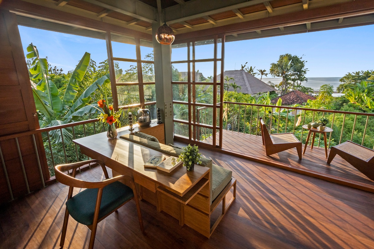 Welcome to Baliwood, a hidden hillside sanctuary where modern design meets untamed nature. Perched high above the coastline, your villa offers a full, uninterrupted ocean panorama — the kind of view you’ll remember for a lifetime. From sunrise to sunset, the horizon is yours. Wake up to the first light shimmering on the Bali Sea, spend your days wrapped in the quiet of the jungle, and watch the sky ignite in golden hues each evening.