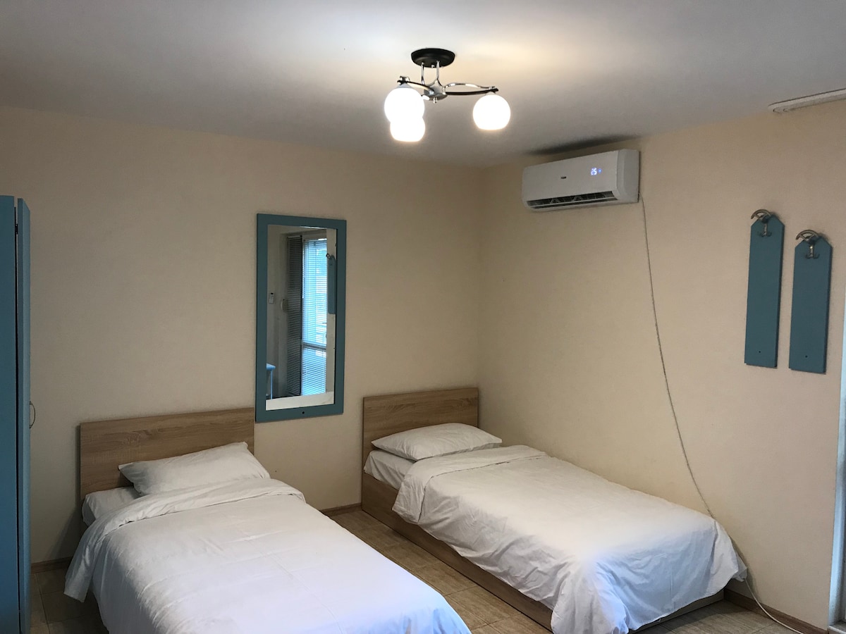 Private room with a separate entrance from the Main Street with private bathroom in Galata, Varna. Central location close to shops, bakery, pharmacy, and restaurants. Bus stop in front of the house and busses provide regular transportation to all main attractions in Varna. Walking distance to the famous Galata beach and 2 min drive/bus ride to Asparuhovo beach. Friendly English speaking hosts - a family. Free public parking nearby, air conditioning, free WiFi and TV with international channels.