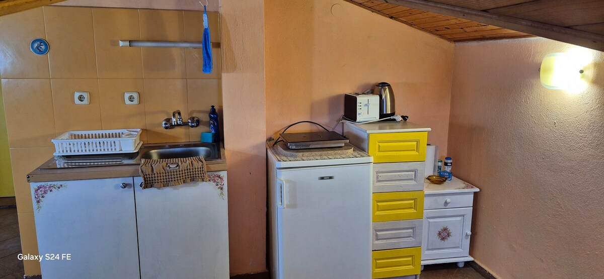 Забравете притесненията си в това просторно и спокойно място. Мансардно студио за 4ма предлага на своите гости напълно оборудвана кухня, климатик, безплатен wi-fi и всички удобства за,една незабравима лятна почивка. Заповядайте при нас!