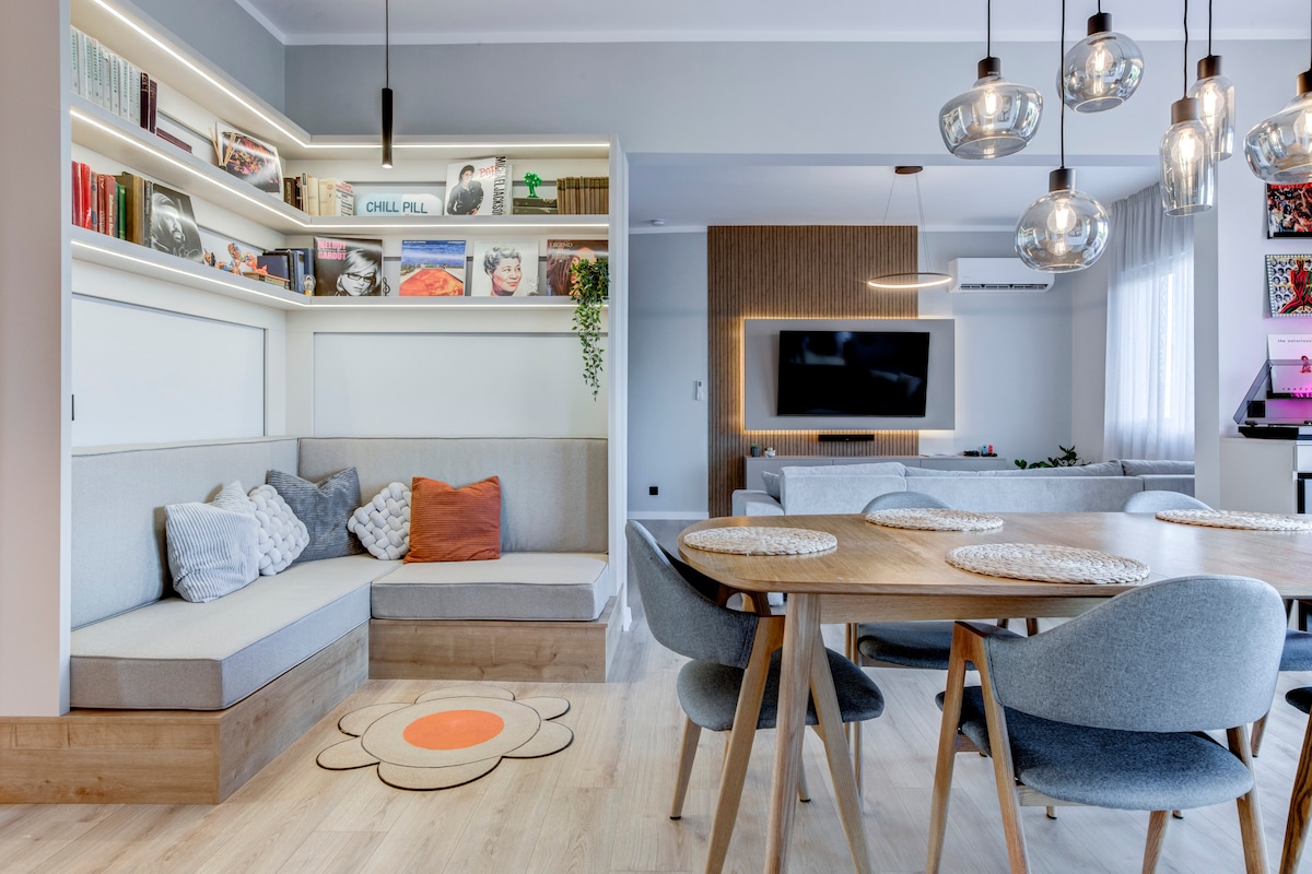 '360 City View 1'' is a luxury boutique 300 sqm penthouse located within a walking distance from National Palace of Culture, two parks, hospitals and right next to subway station. The place is spacious and sunny, alone on the 10th floor in a new building with elevator. The apartment is fully equipped - 2 living rooms, a dining area, a fully equipped kitchen, 3 bedrooms, 2 bathrooms and a patio with 360 views to the city and 2 mountains.