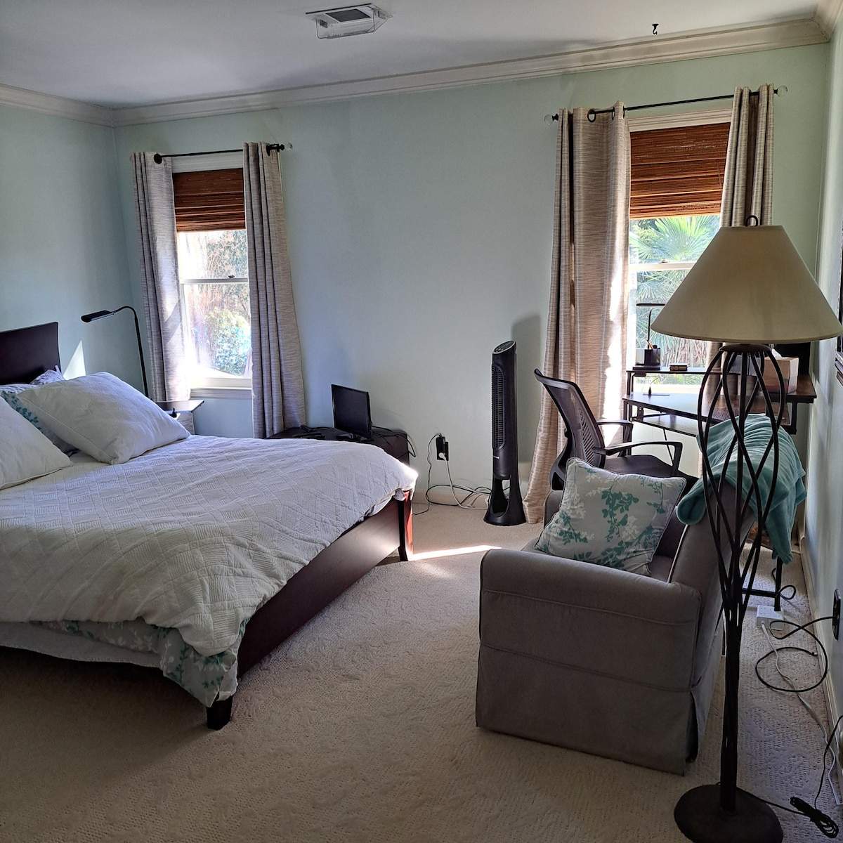 Spacious 830 sq ft, light-filled private suite! Enjoy a spotless, professionally cleaned space—we subsidize over half the cleaning cost for you! The suite offers a dedicated workspace, private entrance, and zero interaction with the main house. Perfect for traveling nurses, business trips, or Braves fans. Located in a safe, upscale area near Truist Park, Marietta Square, and major hospitals. Keyless entry, full bath, kitchen amenities, and quiet. Private patio.