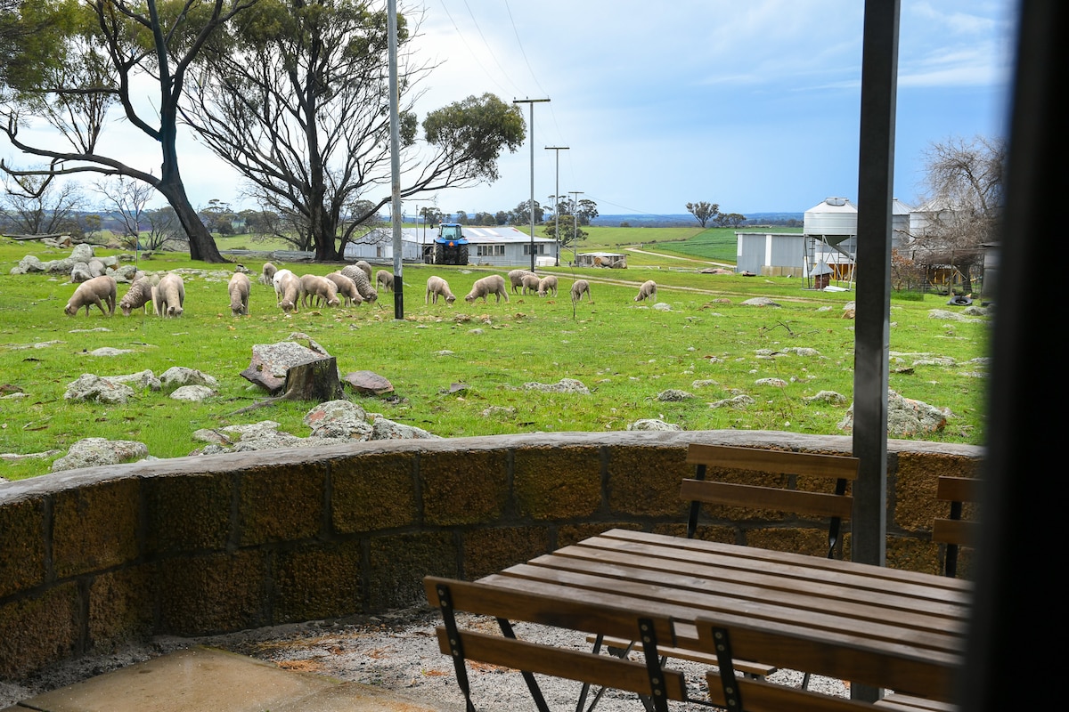 Located on a small wheatbelt farm 2 minutes drive from Corrigin on the popular Pathways to Wave Rock self-drive trail. The perfect Wheatbelt Weekend for couples and families or great overnight stop when exploring Wave Rock or the Public Silo Trail. Private and spacious queen room, lounge room with lounge, TV and dining table, Luxurious bathroom with bath and rain shower, Kitchenette with fridge, microwave & coffee pod machine, BBQ on the veranda. Feed the friendly farm animals each morning.
