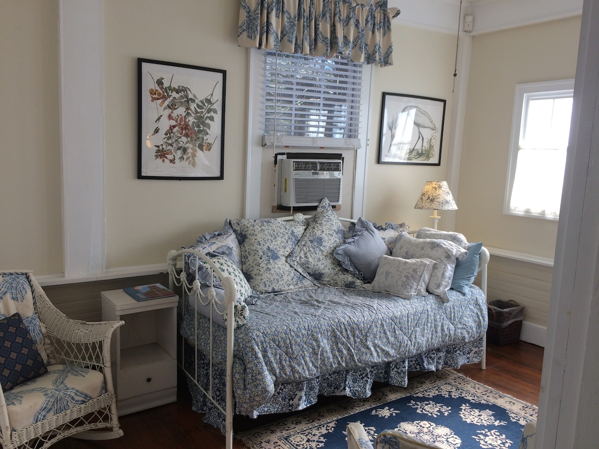 Extra spacious room at Oakland Cottage Bed and Breakfast ! The Garden Room with king bed and extra daybed for an extra guest. Enjoy the private deck through sliding glass doors, and lots of windows to bring in the sunshine. Full healthy and hearty breakfast is served each morning in the dining room with other inn guests and is included in the price. Special diets may be accommodated with advance notice. Daily maid service is provided, unless otherwise requested.