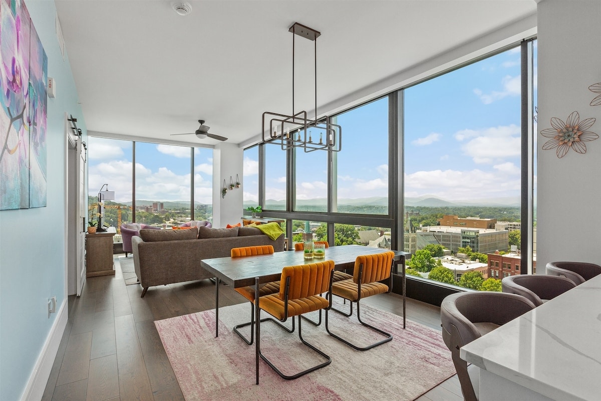 Bright, airy corner residence with beautiful views of the mountains and downtown skyline. This 2 bedroom 2 bath condo is a spacious, open concept design with stylish finishes and fixtures. Everything is brand new and sparkling clean. Large windows invite plenty of natural sunlight. Kitchen opens directly into living area. Walk out the front door of the building and you're in the heart of downtown Asheville and it's many award winning restaurants, tasting rooms, boutiques and galleries.