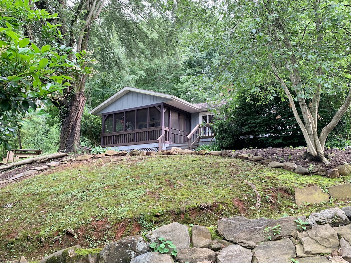 Fall in love with Treetop! Treetop Cottage is tucked in a private beautiful rhododendron forest, yet only 3 mins from downtown Black Mountain, 15 mins to Asheville & Blue Ridge Parkway & 20 mins to the Biltmore Estate. ⭐️Private ⭐️Primary Bedroom (king) ⭐️Sleeping Loft (2 twins) ⭐️XL Porch ⭐️Hammock ⭐️Fire-table<br> We are Black Mountaineers and would be grateful to host you. <br>Click the ❤️ above and add us to your wishlist as you consider your stay.😊 <br>