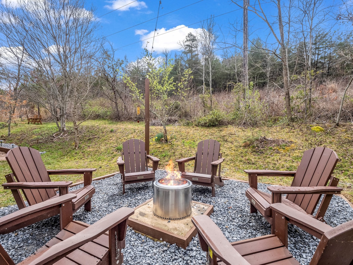僻静的蓝岭度假屋,带火坑和烤架