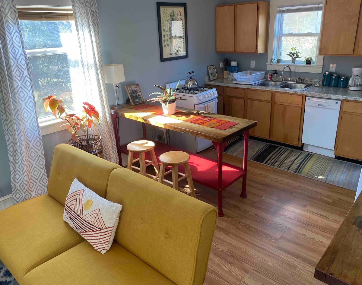 Sunny loft apartment in West Asheville, tucked behind our office. This little 1937 gem has just been completely renovated and is as crisp and clean as they come! Lush linens, a fully stocked kitchen and a divine shower make this little get away a great place if you are looking for a private place to stay in while adventuring through Asheville. Just a 3 mile drive to downtown, the river arts district or the south slope. Only 5 miles to the Biltmore House.