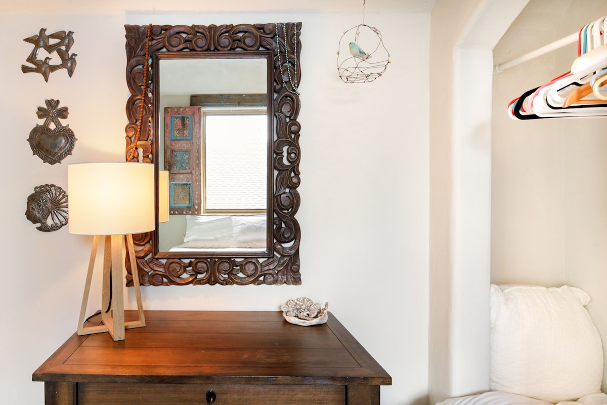 One of a kind artist owned and designed cottage in heart of East-West Asheville. Walkable to restaurants/shops, 2 miles from downtown and 5 minutes to Biltmore Estate. TWO beds total. The cottage has a Moroccan vibe and includes handmade pottery, art, and textiles. Walls are clay plaster and all bedding is cotton. Eco friendly cleaning supplies used. Try the outdoor tub for hot bath also! Parking is on Bradley street in front of the cottage or main house. Totally private.