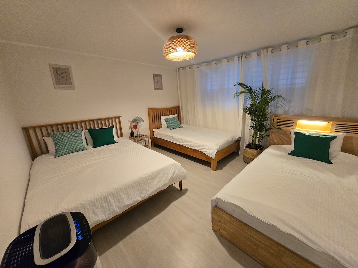家庭旅行/宽敞的2间客房+ 3张床|距离火车站8分钟|江南、蚕室、东大门|行李寄存