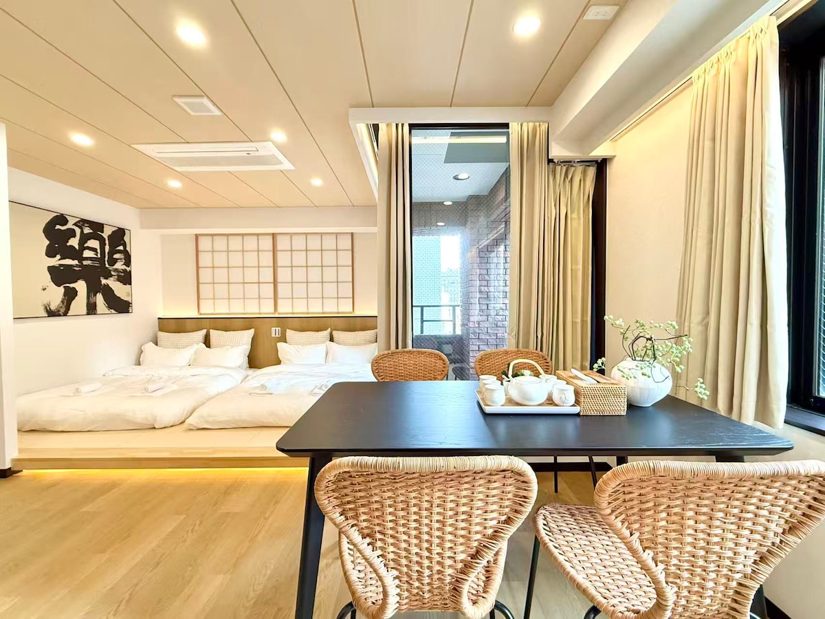 【人気のLogiLogeがフロア拡張! 3階に60㎡超の広々ワンルーム・和室寝室付きが新規公開】 賑やかな商店街から一歩路地へ。日本情緒あふれる神楽坂も徒歩圏内という好立地に、東京の隠れ家「LogiLoge(ロジロッジ)」は佇んでいます。 扉を開けると、オーナーこだわりの家具が配されたモダンなリビング。洗練されたこの空間は、旅の興奮を語り合うくつろぎの場です。しかし、この部屋の真の贅沢は、その奥に広がる「和の主寝室」にあります。 60㎡を超える大空間の一角、6畳の和室スペースには良質な床置きマットレスを常設。都心のワンルームでありながら、リビングの「動」と寝室の「静」が緩やかにゾーニングされた希少な間取りです。畳の香りと低い重心がもたらす安心感は、ここが都会であることを忘れさせ、深い眠りへと誘います。 壁に飾られたオーナー直筆の「書」が、モダンと和を静かにつなぐアクセントに。 江戸川橋駅徒歩3分。神楽坂散策の後は、静寂に包まれる隠れ家へ。東京の日常と非日常が交差する、暮らすような滞在をお楽しみください。