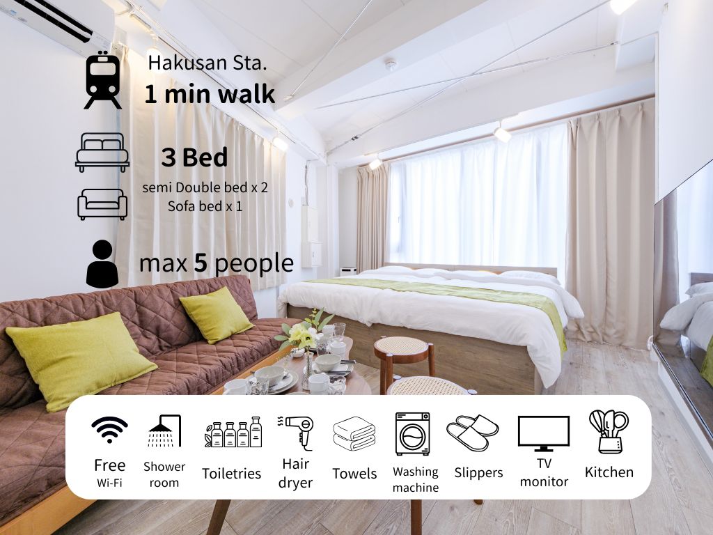 [2025年2月オープン] 自然光に溢れたバルコニー付き一軒家 文京区千駄木にオープンした当施設は、観光客に人気の情緒あふれる谷根千エリアに位置します。千駄木駅まで徒歩5分、根津駅まで徒歩7分です。 根津駅からは東京メトロ千代田線で二重橋前(皇居、丸の内、東京駅)まで7分、日比谷(日比谷公園、銀座)まで10分、表参道(青山)まで20分です。 根津神社/徒歩4分、よみせ通り/徒歩5分、上野公園/徒歩15分、六義園/自転車12分、秋葉原/自転車13分と観光にもとても便利な場所に位置しています。 施設周辺には、お洒落なレストランやカフェ、江戸情緒溢れる専門店が多く点在しています。スーパー、コンビニエンスストア、ドラッグストアなども近くにあります。 ミニマルなデザインが魅力のこの施設では、温水式床暖房、フルキッチン付きの広いリビングダイニングを備え快適にお過ごし頂けます。 2GbpsのLAN接続やWifi、スマートTVへのクロームキャスト機能などもお使いいただけます。 ペット不可、禁煙となりますのでご了承ください。