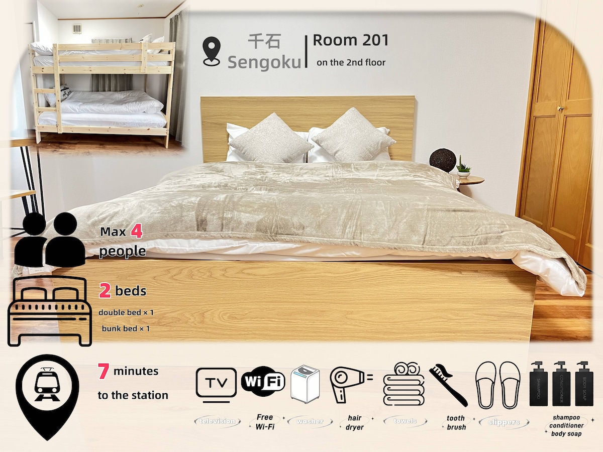 [Great Access & Well-Equipped Home] - 5-minute walk to Oji Station; Ueno just 10 minutes by train. - Across from a supermarket and pharmacy, with restaurants and parks nearby. - 2024-built, 3rd-floor unit with modern, soundproof interiors. Please note there is no elevator. - Close to Oji Shrine, Asukayama Park, dining options, and convenience stores. - Equipped with high-speed Wi-Fi, washing machine and kitchen essentials. - Perfect for up to 4 guests, ideal for both short and long stays.