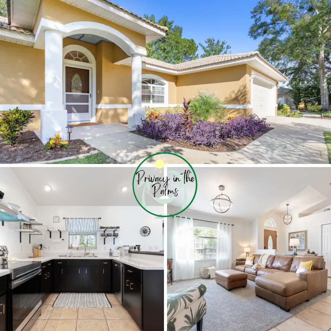 Newly renovated beach-themed pool-front Guesthouse behind the main house seperated by an open breezeway. king memory foam bed one bedroom guesthouse with high ceilings, ceiling fans, full kitchen, screened in non-heated pool. Living room couch is a queen sleeper sofa with a memory foam mattress. Ultra quiet neighborhood with woods behind the property.