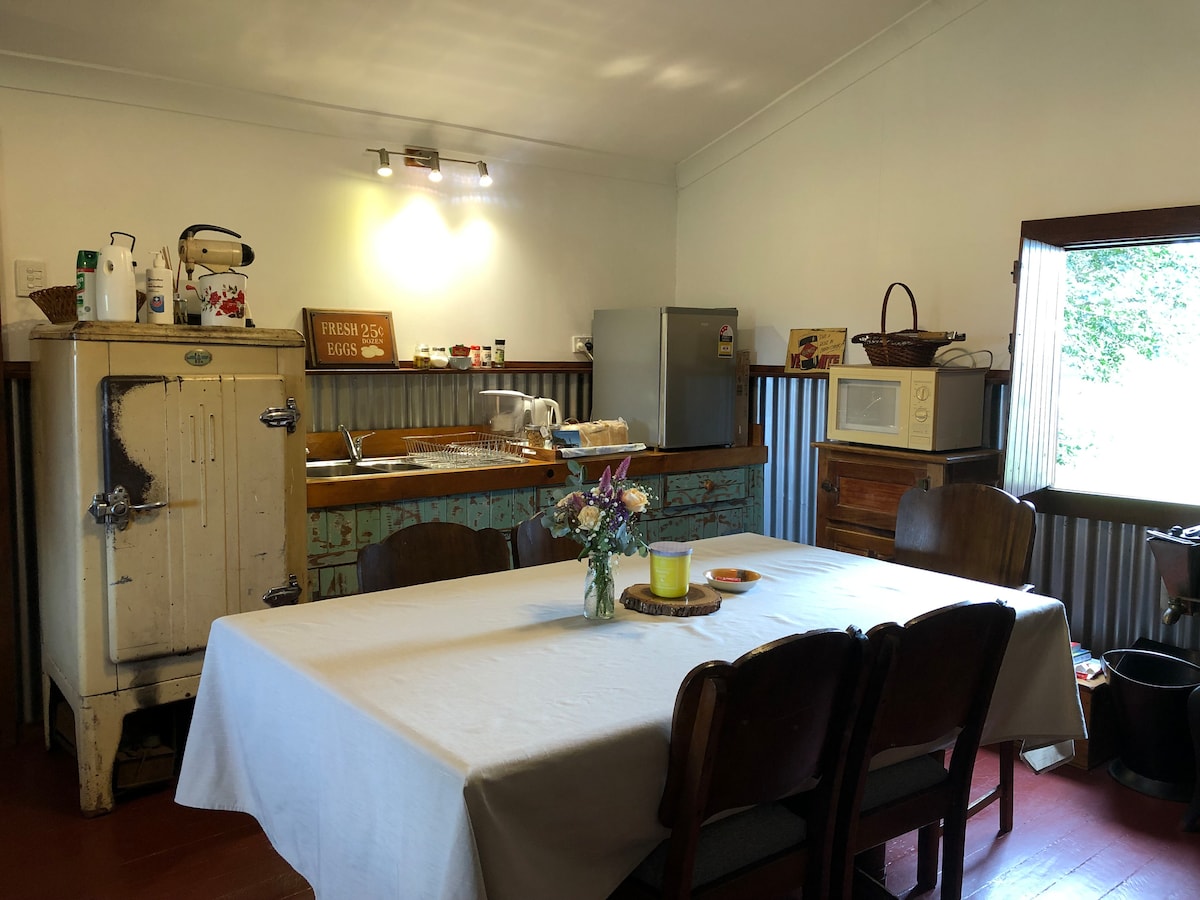 Art's hut is a 1930's couples retreat nestled amongst a country garden and Glendale homestead. The hut is the foundation building of a family working cattle stud "Graneta". This cottage has peaceful country charm, well situated at the foothills of the Bunya Mountains and only 4kms from the quaint town of Bell which has plenty to see and do. Only 33kms drive to the heritage-listed Jimbour house and the beautiful Bunya Mountains which is a lovely drive with spectacular views and great walks.