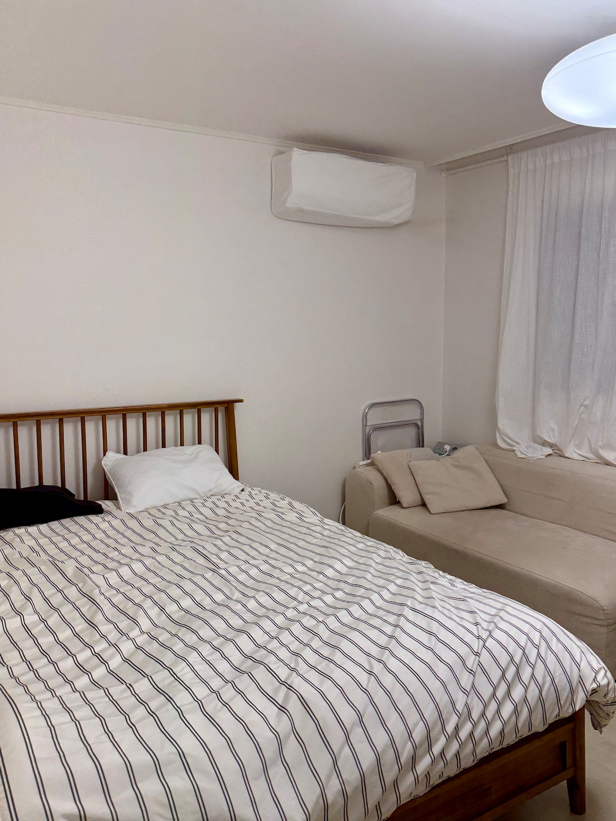 A bright modern studio in the very center of Hongdae. Minimal yet warm with bright yellow accents, the studio is equipped with a full kitchen, fridge, washer(that has dryer function), AC, floor heating(even in the bathroom), a full bathroom, a Queen size bed(1500mm width), a spacious work station/table(1400mm width), and other meticulous amenities you may need. Located on the first floor of a 4 story house building (where my family lives on the top floor) with a separate entrance for you.