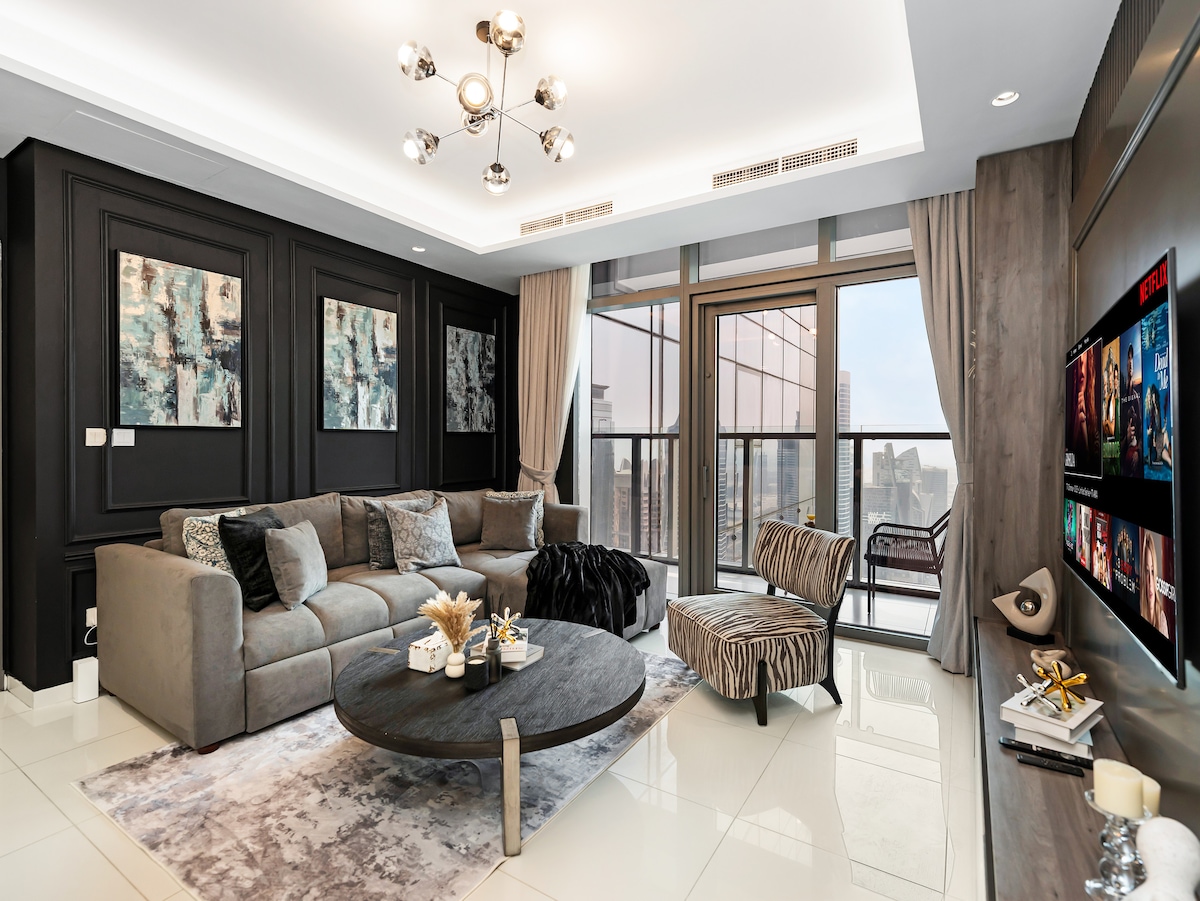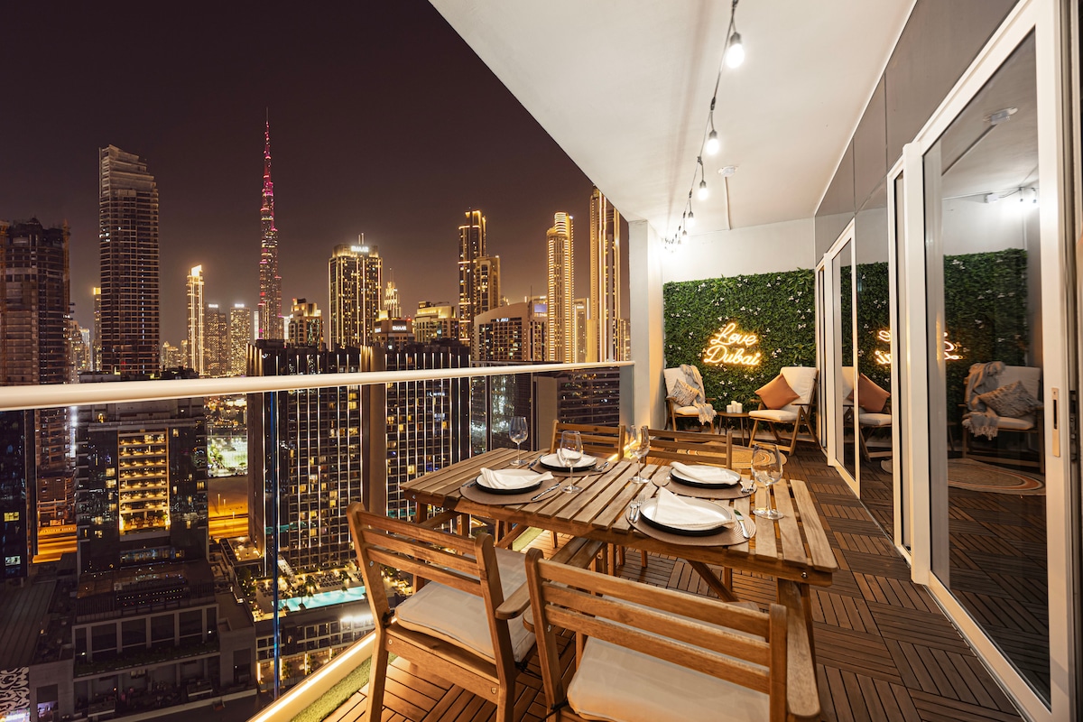 Enjoy a full, unobstructed view of the LED side of Burj Khalifa from your private balcony — the best side to catch the iconic light shows every night without leaving home. ✨ Smart Home: Control all lights and AC across the unit with your voice, thanks to Alexa-powered automation 🌇 Burj View: The LED-facing side offers nightly light shows — your balcony is front-row 🎬 Entertainment Everywhere: Two Netflix-powered projectors and one smart TV — that’s a cinema in every room