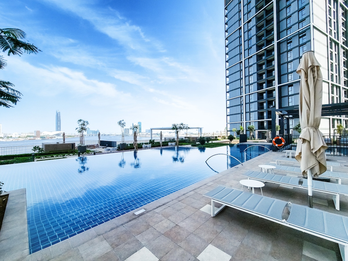 Stay in a uniquely styled 1-bedroom apartment in the luxurious waterfront Palace Residences at Dubai Creek Harbour. This 66 sqm home is fully equipped with everything you need, featuring a bright living area and private balcony with breathtaking skyline views. Guests enjoy premium amenities including a top pool, modern gym, and 24/7 security. Perfectly connected, just 15 minutes from Downtown Dubai and the airport, it’s the ideal base for your Dubai stay.